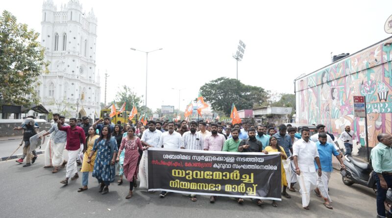 യുവമോര്ച്ച മാര്ച്ചിനു നേരെ പോലീസ് അതിക്രമം;സംസ്ഥാന പ്രസിഡന്റ് മനുപ്രസാദ് ഉള്പ്പടെനിരവധി പേര്ക്ക് പരിക്ക്തിരുവനന്തപുരം: ശബരിമലയില് സ്വര്ണ്ണക്കൊള്ള നടത്തിയ സിപിഎം-കോണ്ഗ്രസ് കുറുവ