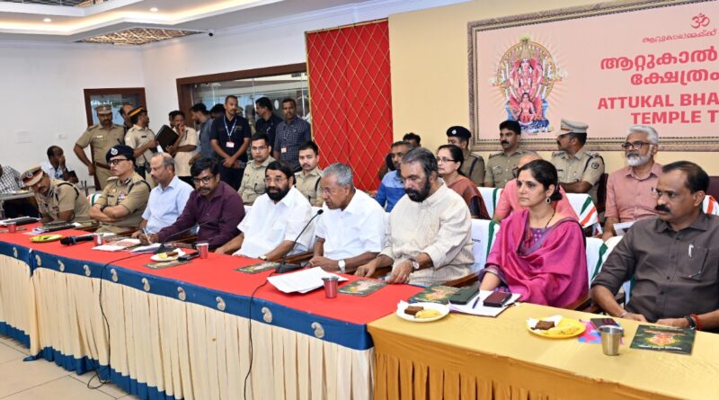 ആറ്റുകാൽ പെങ്കാലയുടെ മുന്നൊരുക്ക അവലോകന യോഗത്തിൽ മുഖ്യമന്ത്രി പിണറായി വിജയൻ സംസാരിക്കുന്നു