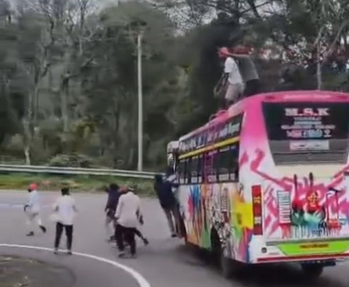 ഇടുക്കി : മൂന്നാറിൽ ബസിന് മുകളിൽക്കയറി സഞ്ചാരികളുടെ അപകട യാത്ര തമിഴ്നാട്ടിൽ നിന്നുള്ള യാത്രക്കാരുടെ വീഡിയോ പകർത്തി മറ്റ് സഞ്ചാരികൾ. 10 ത്തോളം വരുന്ന സഞ്ചരികളാണ് ബസിന് മുകളിൽക്കയറി അപകട യാത്ര നടത്തിയത്. ഹൈറോജ് ഉള്ള ഒരു പ്രദേശമാണ് മൂന്നാർ അവിടെയാണ് തമിഴ്നാട്ടിൽ നിന്ന് എത്തിയ സഞ്ചാരികൾ ഇത്തരത്തിലുള്ള യാത്ര നടത്തിയത്. ഈ യാത്രയുടെ ദൃശ്യങ്ങൾ പുറത്ത് വന്നത്തോടെ മാധ്യമങ്ങളിൽ വലിയ ചർച്ചവിഷമായി മാറിയിരിക്കുകയാണ്.