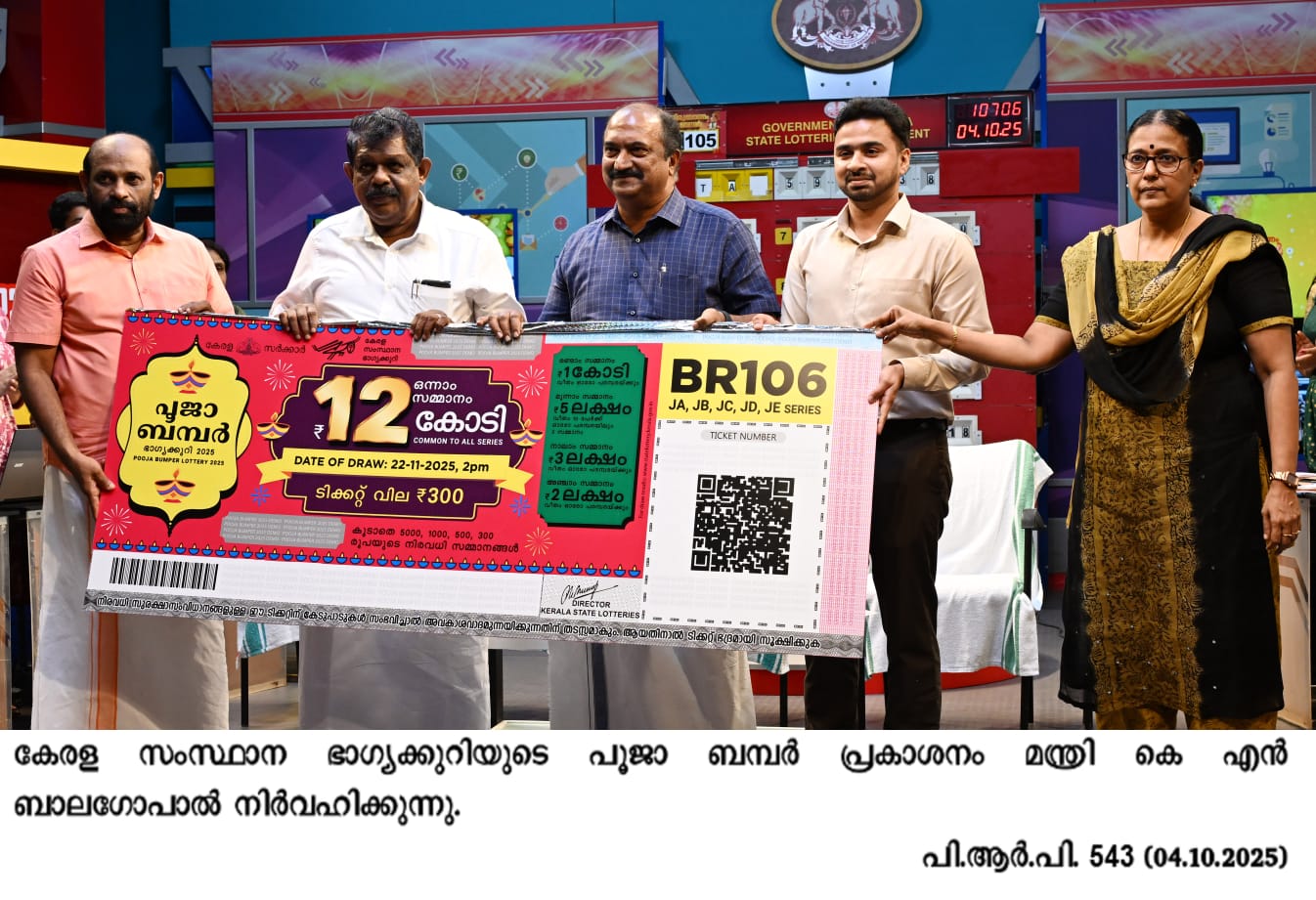 തിരുവനന്തപുരം : കേരള ഭാഗ്യക്കുറി വകുപ്പിന്റെ തിരുവോണം ബമ്പര് ഭാഗ്യക്കുറി നറുക്കെടുപ്പിൽ TH577825 എന്ന ടിക്കറ്റ് ഒന്നാം സമ്മാനമായ 25 കോടി രൂപയ്ക്ക് അർഹമായി. തിരുവനന്തപുരത്തുള്ള ഏജൻസി നമ്പർ T2356 ഏജൻ്റായ പി. തങ്കരാജൻ വിറ്റ ടിക്കറ്റിനാണ് ഒന്നാം സമ്മാനം ലഭിച്ചത്. പാലക്കാട് ജില്ലാ ഭാഗ്യക്കുറി ഓഫീസിൽ നിന്നും വാങ്ങിയ ടിക്കറ്റുകളിലൊന്നായിരുന്നു ഇത്. തിരുവനന്തപുരം ഗോര്ഖി ഭവനിലെ നറുക്കെടുപ്പ് വേദിയില് ഉച്ചയ്ക്ക് 1-ന് നടന്ന പ്രത്യേക ചടങ്ങില് ധനകാര്യമന്ത്രി കെ.എന്. ബാലഗോപാല് തിരുവോണം ബമ്പറിൻ്റെ ആദ്യ നറുക്കെടുപ്പ് നിര്വഹിച്ചു. ആന്റണി രാജു എംഎല്എ അധ്യക്ഷനായിരുന്നു. ഭാഗ്യക്കുറി വകുപ്പ് ഡയറക്ടര് ഡോ. മിഥുൻ പ്രേംരാജ്, ജോയിൻ്റ് ഡയറക്ടർമാരായ മായ എൻ. പിള്ള, രാജ്കപൂർ എന്നിവർ സന്നിഹിതരായിരുന്നു.കഴിഞ്ഞ 27-ന് നടത്താന് നിശ്ചയിച്ചിരുന്ന തിരുവോണം ബമ്പര് നറുക്കെടുപ്പ് അപ്രതീക്ഷിതമായുണ്ടായ കനത്ത മഴയിലും ജിഎസ്ടി മാറ്റവുമായി ബന്ധപ്പെട്ടും, ഏജന്റുമാരുടെയും വില്പനക്കാരുടെയും അഭ്യര്ഥന പരിഗണിച്ച് ഈ മാസം 4-ലേക്ക് മാറ്റിവയ്ക്കുകയായിരുന്നു.തിരുവോണം ബമ്പര് ഭാഗ്യക്കുറിയുടെ 75 ലക്ഷം ടിക്കറ്റുകളാണ് ഈ വര്ഷം അച്ചടിച്ചത്. ഇതിൽ അച്ചടിപിശക് സംഭവിച്ച ഒരു ടിക്കറ്റ് ഒഴികെ മുഴുവൻ ടിക്കറ്റും വിറ്റഴിച്ചു. പാലക്കാടാണ് ഏറ്റവും കൂടുതല് വില്പന നടന്നത്. 14,07,100 എണ്ണം ടിക്കറ്റുകളാണ് ഇവിടെ വിറ്റത്.രണ്ടാം സ്ഥാനത്തുള്ള തൃശ്ശൂര് ജില്ലയിൽ 9,37,400 ടിക്കറ്റുകളും മൂന്നാം സ്ഥാനത്തുള്ള തിരുവനന്തപുരത്ത് 8,75,900 ടിക്കറ്റുകളും ഏജന്സികള് വഴി വില്പന നടന്നു.ഒന്നാം സമ്മാനമായി 25 കോടി രൂപയാണ് ഓണം ബമ്പര് ഭാഗ്യക്കുറിയുടെ നറുക്കെടുപ്പിലൂടെ ലഭിക്കുന്നത്.രണ്ടാം സമ്മാനമായി ഒരു കോടി രൂപ വീതം 20 പേര്ക്കും മൂന്നാം സമ്മാനമായി 50 ലക്ഷം വീതം 20 പേര്ക്കും നാലാം സമ്മാനമായി അഞ്ചുലക്ഷം വീതം 10 പരമ്പരകള്ക്കും അഞ്ചാം സമ്മാനമായി രണ്ടു ലക്ഷം വീതം 10 പരമ്പരകള്ക്കും ലഭിക്കും.കൂടാതെ 5,000 മുതല് 500 രൂപ വരെ ലഭിക്കുന്ന 534670 സമ്മാനങ്ങളും വിജയികൾക്ക് ലഭിക്കും.