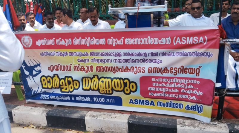 ജാതിമത രാഷ്ട്രീയ കക്ഷിഭേദമന്യേ പ്രവർത്തിക്കുന്ന പ്രബല അനധ്യാപക സംഘടനയായ എയ്ഡഡ് . സ്കൂൾ മിനി സ്റ്റീരിയൽ സ്റ്റാഫ് അസോസിയേഷൻ As MSA ) യുടെ നേതൃത്വത്തിൽ എയ്ഡഡ് സ്കുളിലെ ജീവനക്കാരോടുള്ള നീതി നിഷേധിനെതിരെയുo നിഷേധിക്കപ്പെട്ട അവകാശ സംരക്ഷണത്തിന് . വേണ്ടിയും കേന്ദ്ര വിദ്യാഭ്യാസ് നയത്തിനെതിരെയും 2025 ഒക്ടോബർ ,6″ തീയതി സെക്രട്ടറിയേറ്റ് മാർച്ചും ധർണയും നടത്തുന്ന വിവരം ഇതി നോടകം നിങ്ങൾ അറിഞ്ഞിരിക്കുമല്ലോ