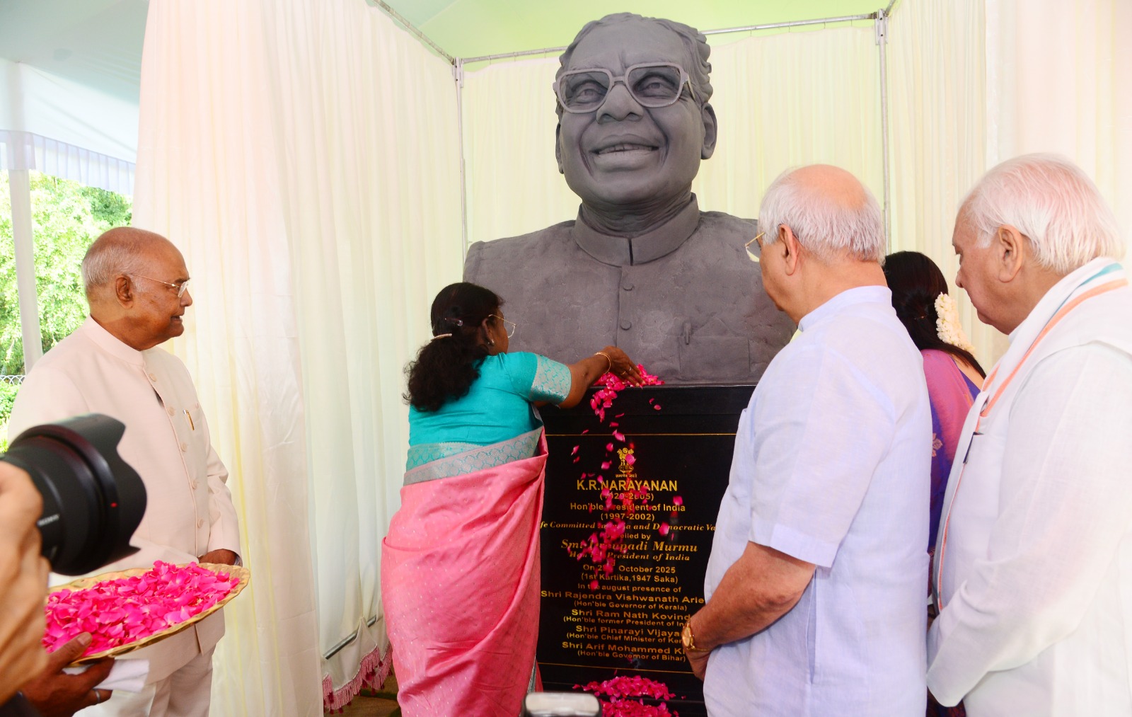 മുൻ രാഷ്ട്രപതി കെ.ആർ. നാരായണന്റെ പ്രതിമ രാജ്ഭവനിൽ അനാച്ഛാദനം ചെയ്തുഇന്ത്യയുടെ പത്താമത് രാഷ്ട്രപതിയായിരുന്ന കെ. ആർ. നാരായണൻ ഭരണഘടനാ മൂല്യങ്ങൾ ഉയർത്തിപ്പിടിച്ച വ്യക്തിത്വവും ലാളിത്യത്തിന്റെ പ്രതീകവും ആയിരുന്നെന്ന് രാഷ്ട്രപതി ദ്രൗപദി മുർമു പറഞ്ഞു. പ്രമുഖ രാഷ്ട്രതന്ത്രജ്ഞനും, നയതന്ത്രജ്ഞനുമായിരുന്ന അദ്ദേഹത്തിന്റെ ജീവിതം സമത്വം, സത്യസന്ധത, പൊതുസേവനം എന്നീ മൂല്യങ്ങൾ മുറുകെപ്പിടിക്കാൻ എല്ലാവർക്കും പ്രചോദനമാണ്. രാജ്ഭവനിൽ സ്ഥാപിച്ച മുൻ രാഷ്ട്രപതി കെ.ആർ. നാരായണന്റെ പ്രതിമ അനാച്ഛാദനം ചെയ്ത് സംസാരിക്കുകയായിരുന്നു രാഷ്ട്രപതി.വിദ്യാഭ്യാസത്തിനും സാമൂഹ്യനീതിക്കും വേണ്ടി കെ.ആർ. നാരായണൻ നടത്തിയ പരിശ്രമങ്ങൾ എന്നും ഓർമ്മിക്കപ്പെടേണ്ടതാണ്. അചഞ്ചലമായ സമർപ്പണത്തിലൂടെയും വിദ്യാഭ്യാസത്തിന്റെ ശക്തിയിലൂടെയുമാണ് കെ.ആർ. നാരായണൻ രാജ്യത്തെ ഏറ്റവും ഉയർന്ന ഭരണഘടനാ പദവിയിൽ എത്തിയത്. ഇന്ത്യൻ വിദേശകാര്യ സർവീസിലെ ഔദ്യോഗിക ജീവിതത്തിലും സമാധാനം, നീതി, സഹകരണം എന്നീ ആശയങ്ങളാണ് കെ.ആർ. നാരായണൻ ഇന്ത്യയ്ക്ക് വേണ്ടി ലോകത്തിന് മുന്നിൽ അവതരിപ്പിച്ചത്.രാജ്യത്തിന്റെയും മനുഷ്യന്റെയും വികസനത്തിൽ വിദ്യാഭ്യാസത്തിനുള്ള പങ്കിന് അദ്ദേഹം ഊന്നൽ നൽകി. സാധാരണ ജനങ്ങളുടെ ജീവിതം ഉയർത്തുന്നതിനായി പ്രവർത്തിച്ച അദ്ദേഹം ഭാവി തലമുറകൾക്ക് പ്രചോദനമാകുന്ന നേതൃഗുണങ്ങളുടെ പ്രതീകമാണ്. ധാർമികത, സത്യസന്ധത, അനുകമ്പ, ജനാധിപത്യപരമായ മനോഭാവം എന്നിവ അദ്ദേഹം എന്നും ഉയർത്തിപ്പിടിച്ചു. അദ്ദേഹത്തിന്റെ മൂല്യങ്ങളും ജീവിതസന്ദേശവും രാജ്യത്തിന്റെ പുരോഗതിയിലേക്കുള്ള പാതയിൽ എന്നും മാർഗദീപമാകും. രാജ്ഭവനിൽ കെ.ആർ. നാരായണന്റെ പ്രതിമ സ്ഥാപിക്കുന്നതിലൂടെ രാജ്യത്തിന്റെ സ്നേഹാദരവ് അദ്ദേഹത്തിന് നൽകുകയാണെന്ന് രാഷ്ട്രപതി പറഞ്ഞു.മുൻ രാഷ്ട്രപതിമാരുടെ ഓർമ്മ നിലനിർത്തുന്നതിനുള്ള ഈ പ്രവർത്തനങ്ങൾക്ക് തുടക്കം കുറിക്കുന്നതിന് നേതൃത്വം നൽകിയ മുൻ രാഷ്ട്രപതി രാംനാഥ് കോവിന്ദിന് രാഷ്ട്രപതി നന്ദി അറിയിച്ചു. കെ.ആർ. നാരായണന്റെ പ്രതിമ അനാച്ഛാദനം ചെയ്യാൻ കഴിഞ്ഞതിൽ അഭിമാനമുണ്ടെന്നും രാഷ്ട്രപതി പറഞ്ഞു.ചടങ്ങിൽ മുൻ രാഷ്ട്രപതി രാംനാഥ് കോവിന്ദ്, ഗവർണർ രാജേന്ദ്ര വിശ്വനാഥ് അർലേക്കർ, ബീഹാർ ഗവർണർ ആരിഫ് മുഹമ്മദ് ഖാൻ എന്നിവർ സംസാരിച്ചു. ഗവർണറുടെ പത്നി അനഘ അർലേക്കർ, മന്ത്രിമാരായ വി. ശിവൻകുട്ടി, ജി.ആർ. അനിൽ, വി.എൻ. വാസവൻ, പി. പ്രസാദ്, രാമചന്ദ്രൻ കടന്നപ്പള്ളി, സ്പീക്കർ എ.എൻ. ഷംസീർ, മേയർ ആര്യ രാജേന്ദ്രൻ, എംപിമാരായ ശശി തരൂർ, അടൂർ പ്രകാശ്, ആന്റണി രാജു എം.എൽ.എ., സംസ്ഥാന പൊലീസ് മേധാവി റവാഡ ചന്ദ്രശേഖർ, രാഷ്ട്രീയ, സാമൂഹ്യ, സാംസ്കാരിക മേഖലയിലെ വിശിഷ്ട വ്യക്തികൾ തുടങ്ങിയവർ ചടങ്ങിൽ പങ്കെടുത്