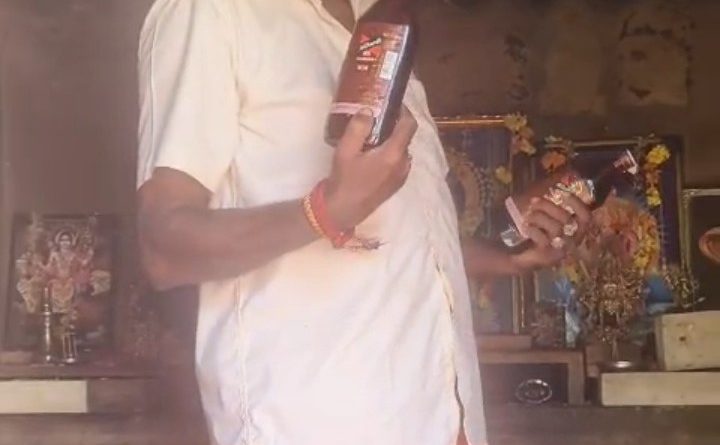 വിഗ്രഹങ്ങൾക്കും ഫോട്ടോകൾക്കും ഇടയിൽ അനികൃതമായി സൂക്ഷിച്ച മദ്യമായി മധ്യവയസ്കൻ പിടിയിൽ