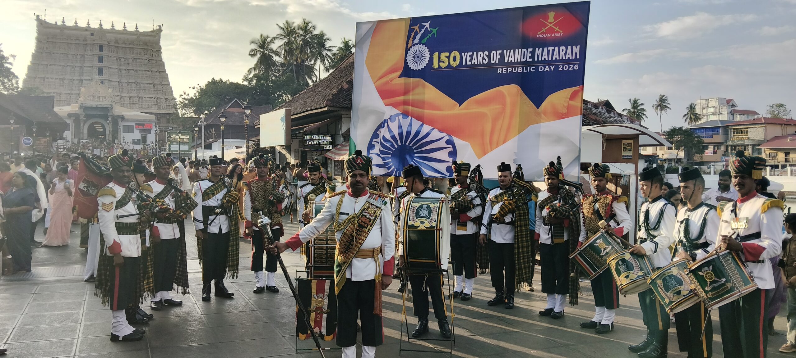 റിപ്പബ്ലിക് ദിനാഘോഷങ്ങളുടെ ഭാഗമായി, ഇന്ന് (ജനുവരി 25) പാങ്ങോട് സൈനിക കേന്ദ്രത്തിൻ്റെ ആഭിമുഖ്യത്തിൽ ശ്രീ പത്മനാഭ സ്വാമി ക്ഷേത്രത്തിന്റെ കിഴക്കേ നടയിൽ സൈനിക പൈപ്പ് ബാൻഡ് മേളം സംഘടിപ്പിച്ചു.