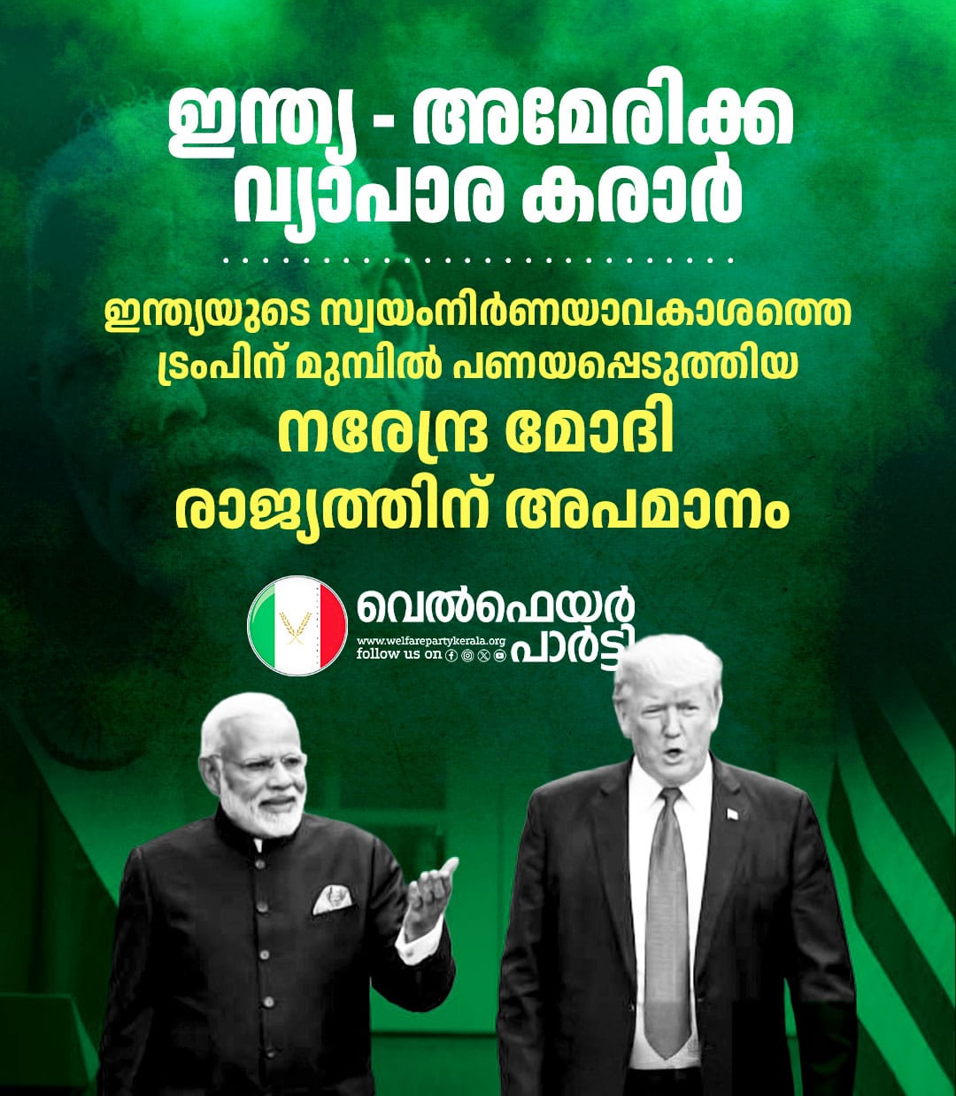 വ്യാപാര കരാർ: ഇന്ത്യയുടെ സ്വയം നിർണയാവകാശത്തെ ട്രംപിന് മുമ്പിൽ പണയപ്പെടുത്തിയ നരേന്ദ്ര മോദി രാജ്യത്തിന് അപമാനം – റസാഖ് പാലേരി