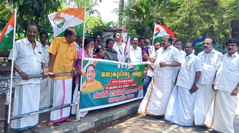 അഞ്ചരക്കണ്ടി ദന്തൽ കോളോജിലെ നിധിൻ രാജിൻ്റെ ആത്മഹത്യയുടെ നിഗൂഢതകൾ പുറത്തു കൊണ്ടു വരുന്നതിന് CBI അന്യേക്ഷണം ആവശ്യപ്പെട്ടു കൊണ്ടു NCP സംസ്ഥാന കമ്മിറ്റി സെക്രട്ടറിയേറ്റിന് മുമ്പിൽ പ്രതിക്ഷേധ ധർണ്ണ നടത്തി. NCP സംഘടനാ ജനറൽ സെക്രട്ടറി അഡ്വ: സൈഫുദീൻ അദ്ധ്യക്ഷത വഹിച്ച സമരപരിപാടി സംസ്ഥാന പ്രസിഡൻ്റ് Dr: സജി പോത്തൻ ഉൽഘാടനം ചെയ്തു. പാർട്ടി നേതാക്കളായ M M ഷാജി സംസ്ഥാന വർക്കിംഗ് പ്രസിഡണ്ട് മുഖ്യപ്രഭാഷണംജയൻ അടൂർ വൈസ് പ്രസിഡണ്ട് ജയൻ അടൂർ പ്രകാശ് ജെ.ബി,കരകുളം രാജ്കുമാർ തുടങ്ങിയവർ സംസാരിച്ചു .