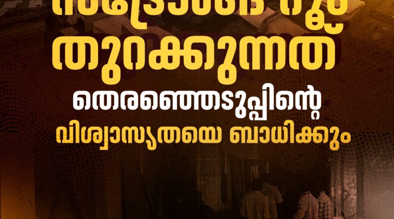 സ്ട്രോങ്ങ് റൂം തുറക്കൽ തെരഞ്ഞെടുപ്പിൻ്റെ വിശ്വാസ്യതയെ ബാധിക്കും – വെൽഫെയർ പാർട്ടി`പ്രസിദ്ധീകരണത്തിന്,“2026 ഏപ്രിൽ 21`തിരുവനന്തപുരം: പേരാമ്പ്ര, നെൻമാറ, ഗുരുവായൂർ മണ്ഡലങ്ങളിലെ ബാലറ്റ് യൂണിറ്റുകൾ സൂക്ഷിച്ചിരിക്കുന്ന സ്ട്രോങ്ങ് റൂമുകൾ തുറക്കലുമായി ബന്ധപ്പെട്ട് ഇപ്പോൾ ഉണ്ടായ സംഭവങ്ങൾ തെരഞ്ഞെടുപ്പിൻ്റെ വിശ്വാസ്യതയെ ബാധിക്കുമെന്ന് വെൽഫെയർ പാർട്ടി സംസ്ഥാന പ്രസിഡൻ്റ് റസാഖ് പാലേരി.ഇൻഡക്സ് കാർഡ് തയ്യാറാക്കൽ, എൻകോർ പോർട്ടലിൽ വിവരങ്ങൾ അപ്ഡേറ്റ് ചെയ്യൽ, പ്രിസൈഡിംഗ് ഓഫിസർ മറന്നുവെച്ച ഡയറി എടുക്കൽ തുടങ്ങിയ ബാലിശ വാദങ്ങളാണ് റിട്ടേണിംഗ് ഓഫീസർമാർ പറയുന്നത്. ജില്ലാ ഇലക്ഷൻ ഓഫീസറായ കലക്ടർമാർക്കും മുഖ്യ തെരഞ്ഞെടുപ്പ് ഓഫിസർക്കും ഇതിൽ ഉത്തരവാദിത്വമുണ്ട്. സ്ട്രോങ് റൂമുകൾ തുറന്നിടങ്ങളിൽ യഥാർഥത്തിൽ എന്താണ് നടന്നതെന്നത് സംബന്ധിച്ച് സുതാര്യമായ വിവരങ്ങൾ രാഷ്ട്രീയപാർട്ടികൾക്കും സ്ഥാനാർത്ഥികൾക്കും നൽകാൻ കമ്മീഷൻ സംവിധാനം ഉണ്ടാക്കണം. സി.സി.ടി.വി നിശ്ചിത സമയം ഓഫ് ആയിരുന്നു എന്നാക്ഷേപം സംബന്ധിച്ച് അന്വേഷണം നടത്തണം. നിരുത്തരവാദപരമായ സമീപനം സ്വീകരിച്ച റിട്ടേണിംഗ് ഓഫീസർമാർക്കെതിരെ കർശനമായ നടപടി സ്വീകരിക്കണം. അവരുടെ തീരുമാനങ്ങൾക്ക് പിന്നിൽ മറ്റെന്തെങ്കിലും ഘടകങ്ങൾ ഉണ്ടോ എന്ന് അന്വേഷിക്കണം തുടങ്ങിയ ആവശ്യങ്ങൾ അദ്ദേഹം ഉന്നയിച്ചു.വോട്ടർ പട്ടിക തയ്യാറാക്കൽ മുതൽ തെരഞ്ഞെടുപ്പ് ഫലം പ്രഖ്യാപിക്കുന്ന അവസാന നിമിഷം വരെ സുരക്ഷിതത്വവും സുതാര്യതയും കാത്തു സൂക്ഷിക്കുന്ന കാര്യങ്ങളിൽ തെരഞ്ഞെടുപ്പ് കമ്മീഷൻ്റെ നിഷ്പക്ഷത ഇന്ത്യയിൽ സംശയിക്കപ്പെട്ടു കൊണ്ടിരിക്കുകയാണ്. ഇന്ത്യയിലെ വിവിധ സംസ്ഥാനങ്ങളിലെ തിരഞ്ഞെടുപ്പിനെ കുറിച്ച് ആ നിലക്കുള്ള ആശങ്കകൾ ജനങ്ങൾക്കിടയിൽ നിലനിൽക്കുന്നുണ്ട്. മുമ്പെങ്ങുമില്ലാത്ത വിധം തെരഞ്ഞെടുപ്പ് കമ്മീഷൻ നടപടികൾ കോടതിയിൽ ചോദ്യം ചെയ്യാൻ രാഷ്ട്രീയ പാർട്ടികളും ജനങ്ങളും നിർബന്ധിതമാകുന്ന സാഹചര്യം ഉണ്ടായിക്കൊണ്ടിരിക്കുമ്പോഴാണ് നിയമസഭാ തെരഞ്ഞെടുപ്പിനു ശേഷം കേരളത്തിൽ ഇപ്പോൾ ആക്ഷേപം ഉയർന്നിരിക്കുന്നത്. പോളിംഗ് ബൂത്തിൽ വോട്ടർമാരുടെ മൊബൈൽ ഫോൺ പോലും ഉപയോഗിക്കാൻ അനുവദിക്കാത്ത തെരഞ്ഞെടുപ്പാണ് കേരളത്തിൽ നടന്നത്. ഈ ജാഗ്രത തെരഞ്ഞെടുപ്പാനന്തരം നിലനിർത്തുന്നതിൽ വീഴ്ച സംഭവിച്ചിട്ടുണ്ടെന്ന് ജനങ്ങൾ ആശങ്കിക്കുന്ന സന്ദർഭം ഉണ്ടാകാൻ പാടില്ലായിരുന്നുവെന്ന് അദ്ദേഹം പറഞ്ഞു._കൂടുതൽ വിവരങ്ങൾക്ക്_#Contact*Adhil Abdul Rahim*+91 9895 550 436Media Coordinator,Welfare Party Kerala.